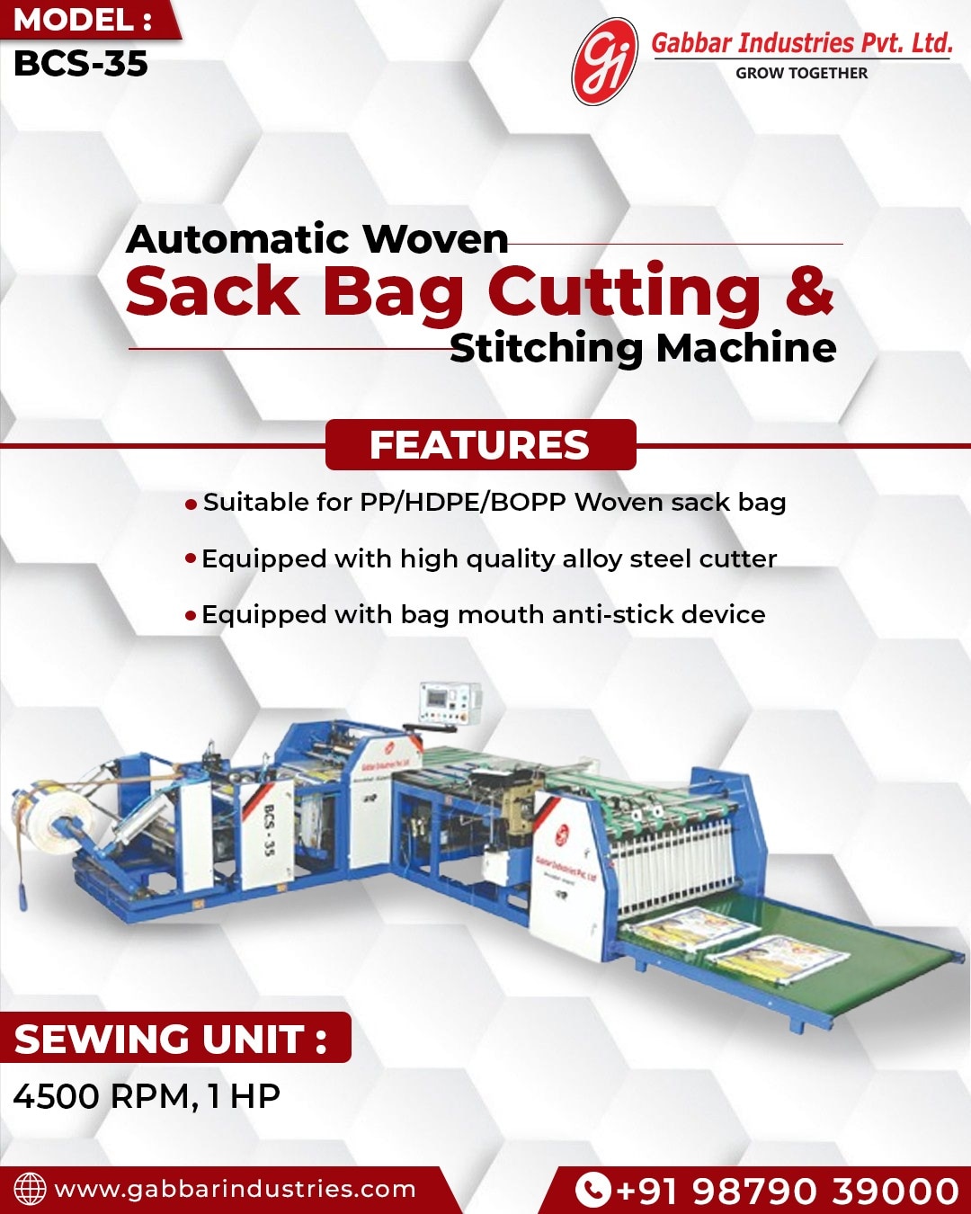 High Speed, Double Needle, Double Chain Stitch Machine Manufacturer in India. Every industry demands machines that can keep up with high production without losing precision. That’s where Gabbar Industries Pvt. Ltd. steps in with its High Speed, Double Needle, Double Chain Stitch Machine. Designed especially for heavy materials like HDPE and PP woven sacks, this model blends modern engineering with practical efficiency. Technical Overview • Model: ST 502 HD • Speed: Up to 3000 RPM (working speed approx. 2800 RPM depending on fabric) • Seam Style: Twin-Seam, Double Thread Chain Stitch (2 Needle, 2 Looper, 4 Thread) • Needle Gap: 6 mm • Stitch Density (per 100 mm): Adjustable 11–18 • Material Thickness Capacity: Up to 8 mm • Material Compatibility: PP/HDPE woven sacks, hessian fabrics, multiwall paper bags • Needle Size: DN X 1 #25/26 Groz-Beckert • Thread Options: PP, HDPE, multifilament, synthetic or cotton yarn • Power Requirement: 0.5 HP clutch motor (Single Phase, 2850 RPM) • Weight: 42 Kg • Lubrication: Fully automatic with recycling system Where Does It Fit Best? This Double Needle Chain Stitch Machine finds its place in industries producing: • Cement bags • Fertilizer sacks • Food grain storage bags • Multiwall paper bags • Woven sack packaging lines Its ability to stitch materials up to 8 mm thick makes it a dependable solution for businesses where packaging strength is critical. What Makes This Machine Stand Out? • Bobbin-less Stitching System – eliminates downtime and boosts productivity. • Versatile Yarn Use – compatible with cotton, synthetic yarn, and plastic tapes. • Convertible Design – easily switches between double and single needle operation. • Durability Assured – automatic lubrication and oil recycling system extend life. • Easy Maintenance – spare parts are readily available when needed. Professionals in packaging prefer this machine because it not only runs fast but also maintains stitch consistency across long working hours. A Partner You Can Count On At Gabbar Industries Pvt. Ltd., we focus on building machines that become assets, not just tools. This high-speed stitch machine is engineered for professionals who need durability, adaptability, and performance every single day. Call to Action If you’re searching for a High Speed, Double Needle, Double Chain Stitch Machine that guarantees performance and reliability, look no further. Talk to Gabbar Industries Pvt. Ltd. today—your production deserves the upgrade.