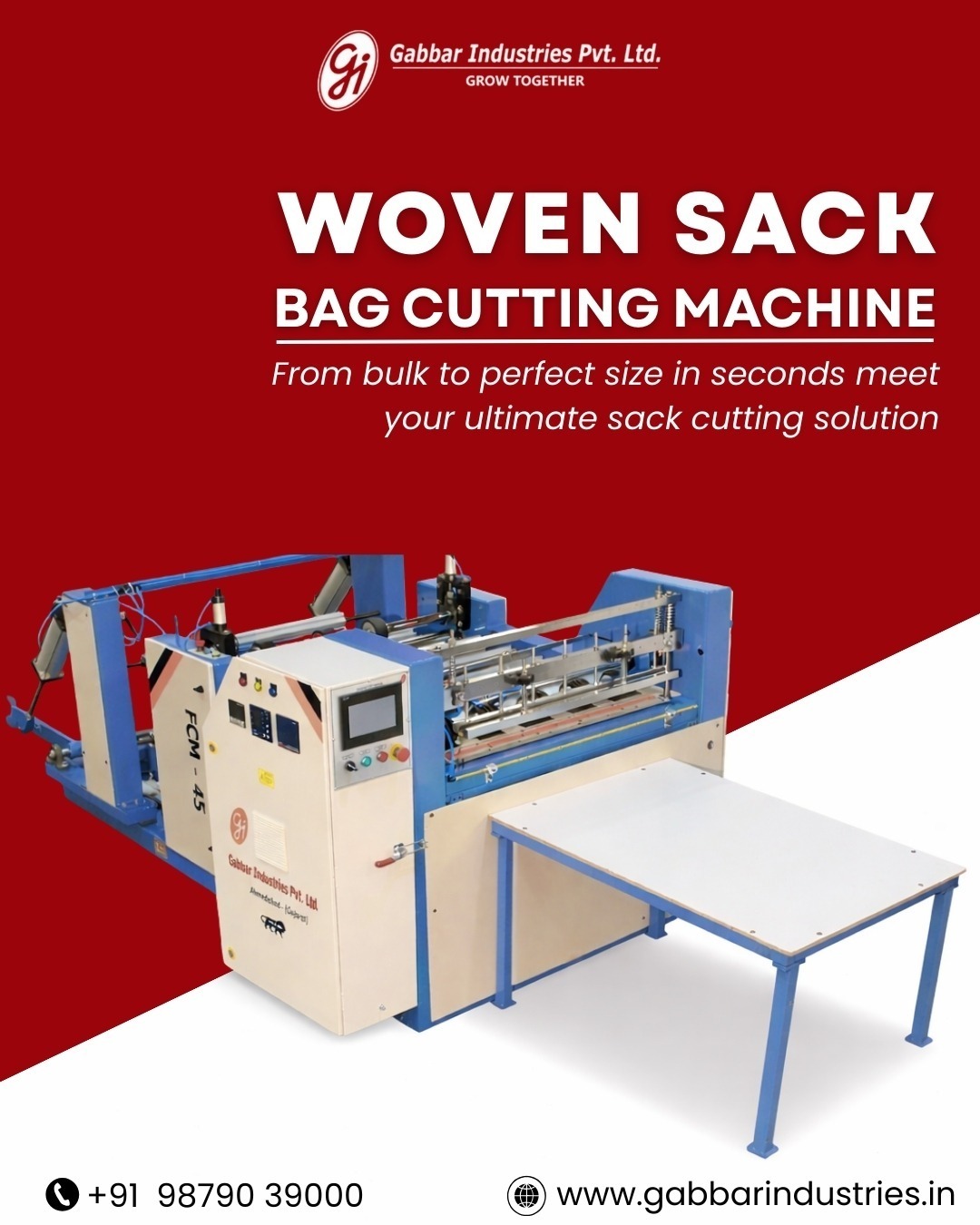 Choose Gabbar Industries Pvt. Ltd. for reliable, high-performance Woven Sack Bag Cutting Machines that ensure precise, efficient, and cost-effective bag production.