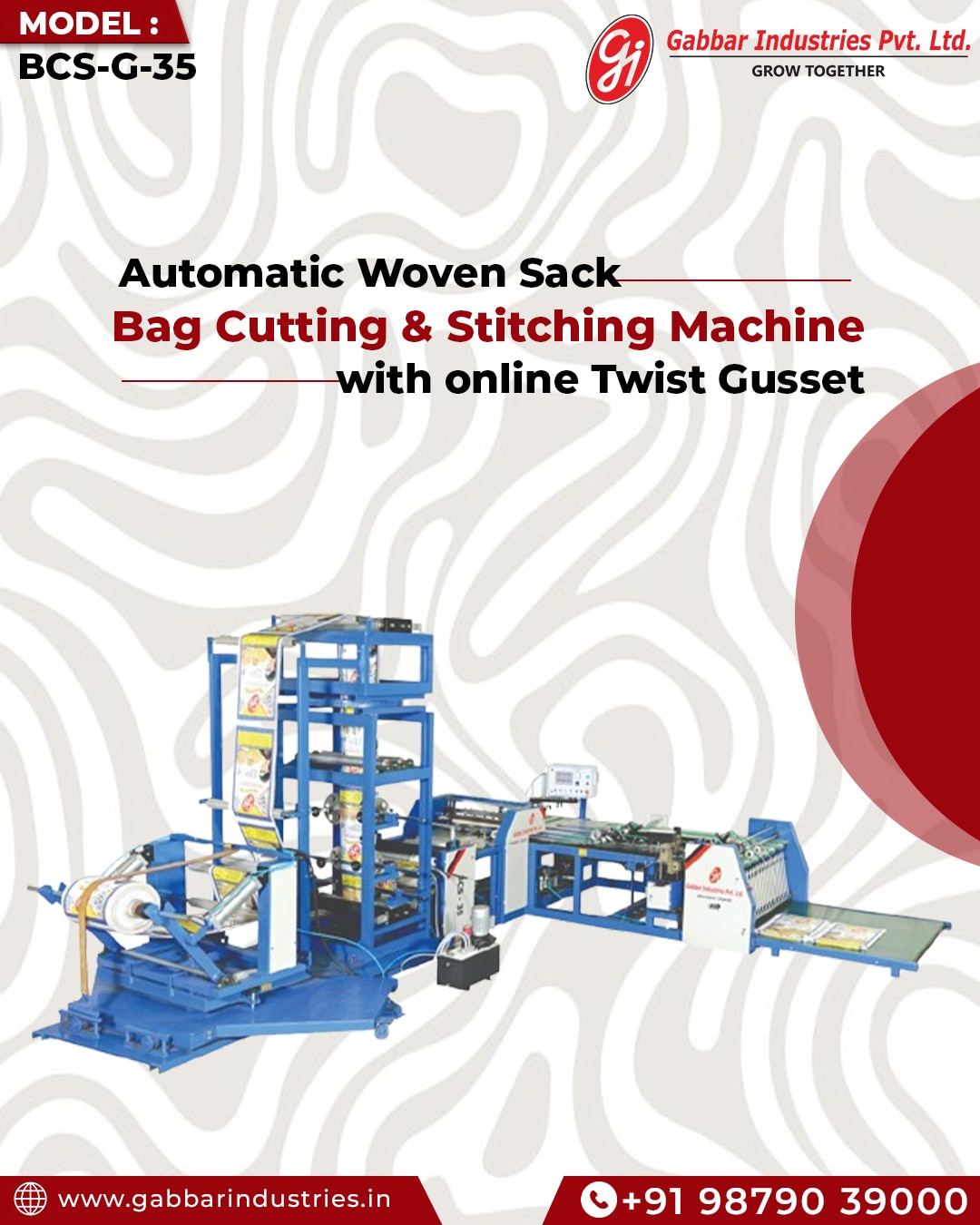 In the modern packaging industry, efficiency, precision, and reliability define success. The Automatic Woven Sack Bag Cutting & Stitching Machine with Online Twist Gusset from Gabbar Industries Pvt. Ltd. is designed to meet these demands, delivering high-speed production, accurate cutting, and flawless stitching in a single integrated system.